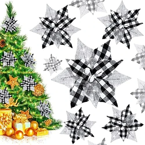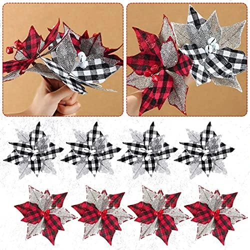 - Reliable and practical to use: these checked Christmas poinsettias are made of quality cloth and wire material, which are reliable, soft, firm and practical for you to use; The layered combination of 6 buffalo grid petals and 3 linen petals will make the flower elegant and chic to decorate your yards well