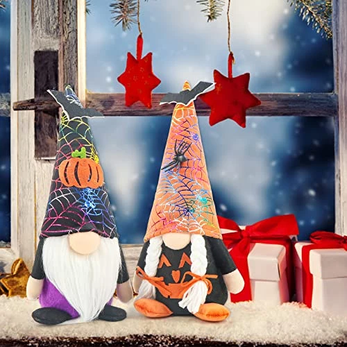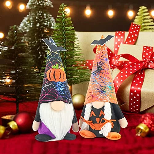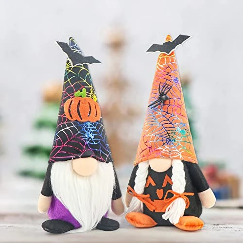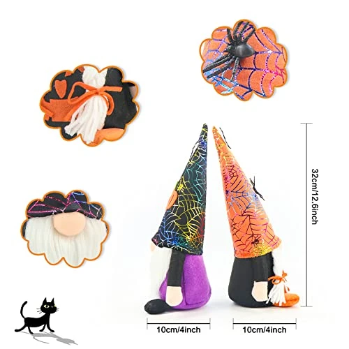 - 【Premium Quality Fine Craftsmanship】 The Christmas Gnomes plush are made by professional artisans, featuring a heavy base for the extra stability. Fall Halloween gnomes are made of plush and felt, soft, non-toxic and odorless. Unique design, with spider web pattern hat, orange and purple echo, with pumpkin, spider, bat embellish, full of Halloween atmosphere.