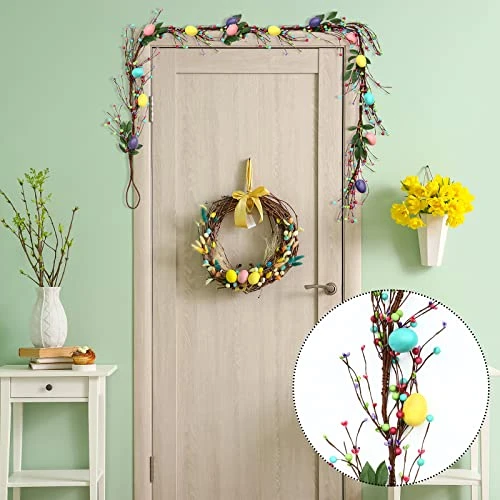 - Vivid and Stylish Spring Feeling: this Easter garland can be applied as an elegant ornament, which adopts pink, yellow, blue, purple eggs and green leaves, beautiful and vivid, to add a touch of color and fun and show your festival enthusiasm