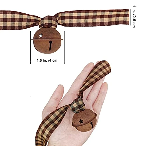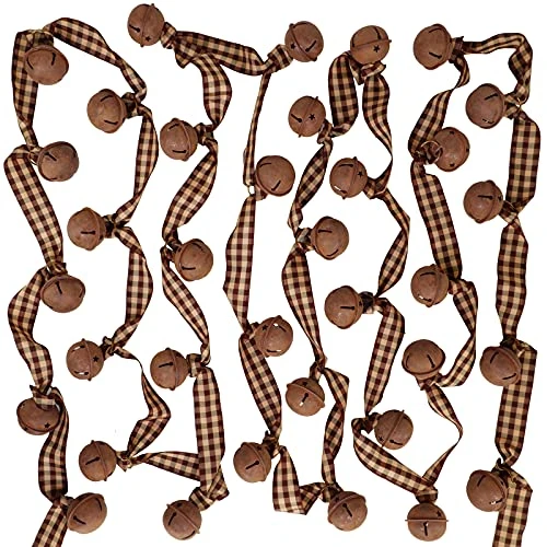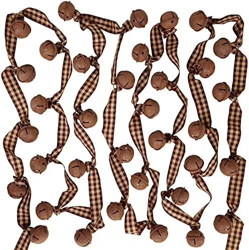 - Color: The rusty sleigh bells are made to look aged and feature star cutouts on the top halves, which encompass the essence of old-fashioned Americana. The ribbon has classic brown & tan gingham check to give the garland a delightful homespun accent. This Christmas bell garland will bring a great rustic look and lots of joy to your house!