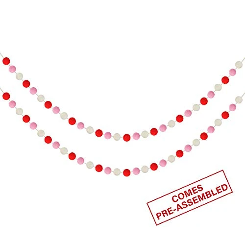 - 💕 PREMIUM & COMFORTABLE MATERIAL — The Valentines pom pom garlands are made of durable, premium and comfortable felt material(each garland has 30 felt balls) , which are alternated by red, pink and white, and strung with white rope twine. All the balls are durable, lightweight and reusable, which are the best choice for your party decorations and home decor.