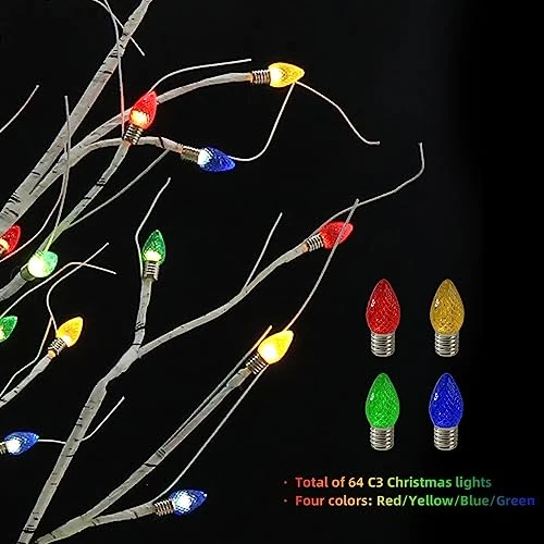 - 【Flexible Branches】The branches of birch tree can be bent to multiple desired positions and hanging festival ornaments,create a romantic and fantastic lighting atmosphere for your home, living room, balcony, garden, porch, etc.
