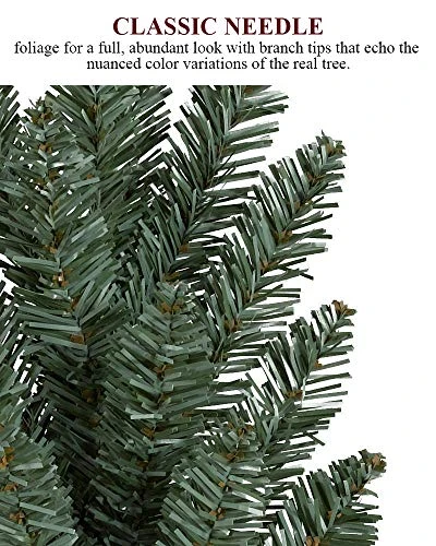 - FULL SHAPE: It features 100% PVC Classic Needles for fullness – 4.5 ft is 37” wide with 886 branch tips, 5.5 ft is 45” wide with 1,288 branch tips, 6 ft is 40′ wide with 1,664 branch tips, 6.5 ft is 53” wide with 2,144 branch tips, 7ft is 53″ wide with 2,366 branch tips, 7.5 ft is 60” wide with 2,960 branch tips, 9 ft is 64” wide with 4,632 branch tips.