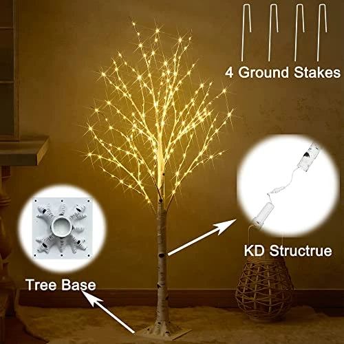 - 【Authentic Look】: Beautifully formed with a natural silhouette, lifelike birch finish over the whole light tree to bring a magical look inside or outside