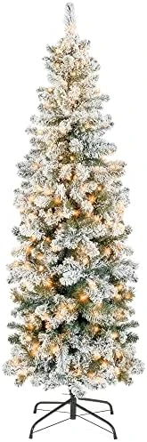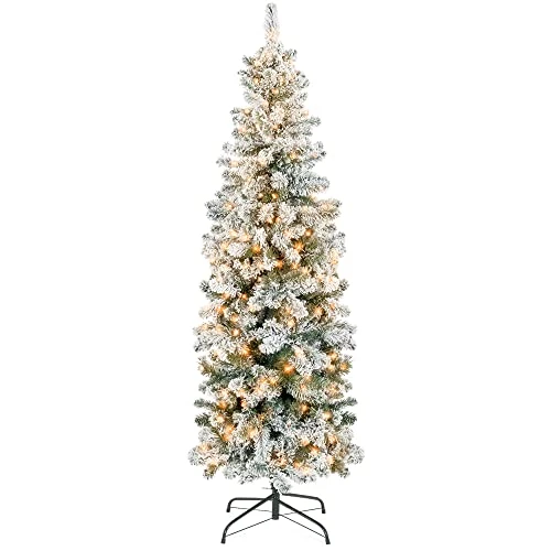 - SNOW-FLOCKED APPEARANCE: Artificially flocked branches are pre-strung in a series of warm white incandescent lights for a light, wintry appeal; Number of Lights (4.5ft/6ft/7.5ft/9ft/12ft): 150/ 250/ 350/ 500/ 950