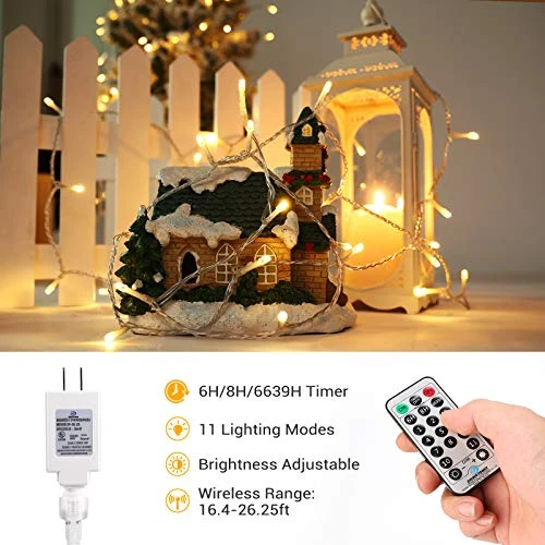 - Remote Control: Brings you great convenience with the included remote, control the string lights with 4 brightness level, 11 lighting modes, timer and turn it on/off. Up to 26.25ft wireless range. Note: Please remove the insulation sheet before use.