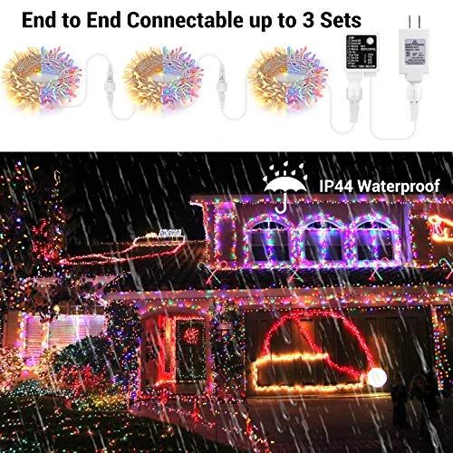 - End-to-End Connectable: Upgraded adapter string lights allowing end-to-end linkable up to 3 sets, total 600 LED 197ft, can extend to get your desire decoration needs and release you from worrying about not enough socket issue. Note: Please keep the white box of the first strand, then remove the white boxes of the second and third strand and connect to the first strand directly, otherwise, the lights cannot work properly after being connected.