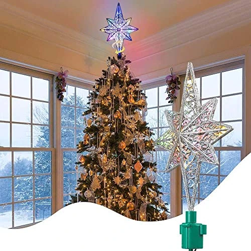 - 🎅🎁【RGB Multicolor Polar Star Tree Topper】This Christmas 8-point tree topper total set with 20 colorful build-in light which adds brilliance and shine to this Christmas festival. Also the package contained 2m copper wire with plug.