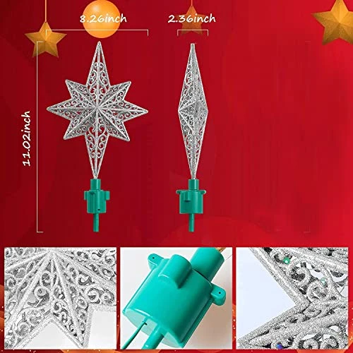 - 🎅🎁【Best Xmas Decor】Suitable for indoor and use. An exquisite decor to your home, living room, bedroom, fireplace, and children’s room. This multicolor star tree topper is made of durable plastic and the surface cover with shine glitter, the whole dimension is 22×8.2×2.4 inch.