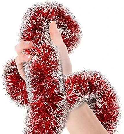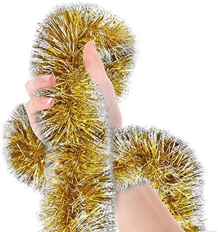 - VERSATILE DIY SUPPLIES: Create your own decor for any event with confidence using our foil tinsel fringe garland. Our thick tinsel garland has a soft wire inside to allow it to be easily formed into any shape to be hung or wrapped.