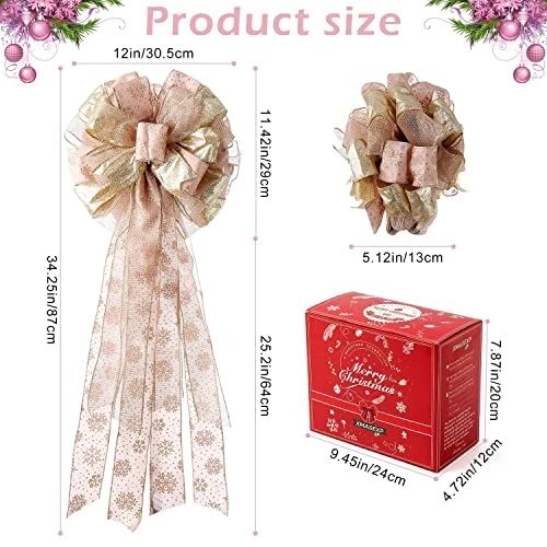 - Material:Christmas decorative bow made of PET film and polyester yarn, have a little glitter on the ribbon surface. Packed in a delicate box, can be reused.