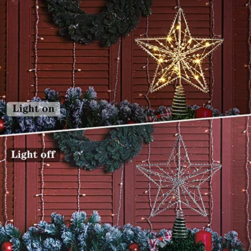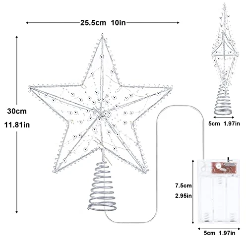 - 【Battery Powered】: The Christmas topper stars are battery powered, no plug required, push out the battery compartment cover to install 3 AA batteries (battery not included). Then turn on the battery box switch and the stars will light up, bringing a warm lighting effect.