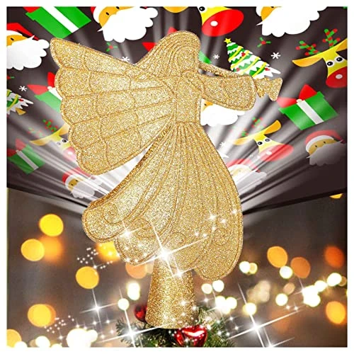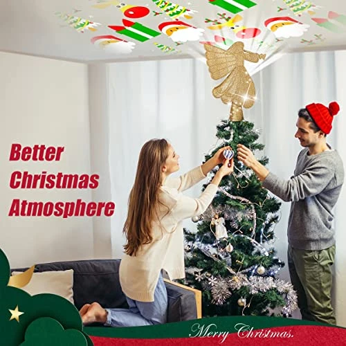 - 👼Wide Application Christmas Decorations: Christmas tree topper size 10.4*7.7*2.75 inches, wire length 9.8ft, a great universal size for all kinds of different Christmas trees. The tree topper with lights can be as Christmas tree ornaments, also ideal as a rotating LED night light projector for children.