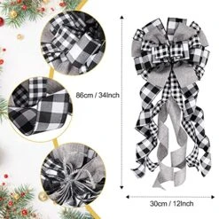 Christmas Tree Topper Bow With Glitter Satin Mesh Streamer For Xmas Ornaments Wreath Decor