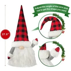 Glitzhome Handmade Plaid Angel Figurine Christmas Treetop Ornament Decoration 12″ H – Red & Black