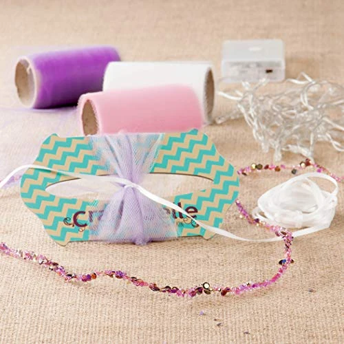 - Also includes a glitter garland, a satin cord, and mesh tulle