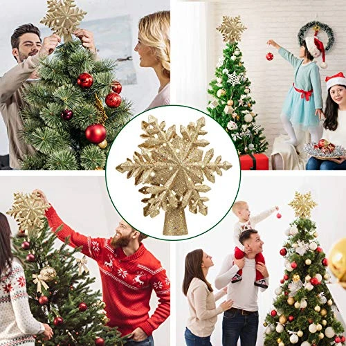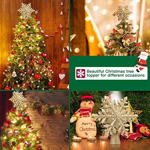 - Best Christmas Decoration: The snow-colored shell that is sprinkled with gold glitter can be seen clearly at night, and it shines even under the illumination of the light. The snowflake is completely covered in silver glitter on both sides and is equally pretty front and back. Snowflake projection tree top lights and your Christmas tree are more perfect, making your Christmas tree more warmer in winter.