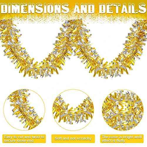 - Multiple Uses: with exquisite workmanship, these glitter tinsel twist garlands can be hung on your walls, trees, or others; So you can use them to decorate your photo frames, garlands, gift wrapping, decorating tables, Christmas trees, home stairs, and more