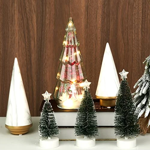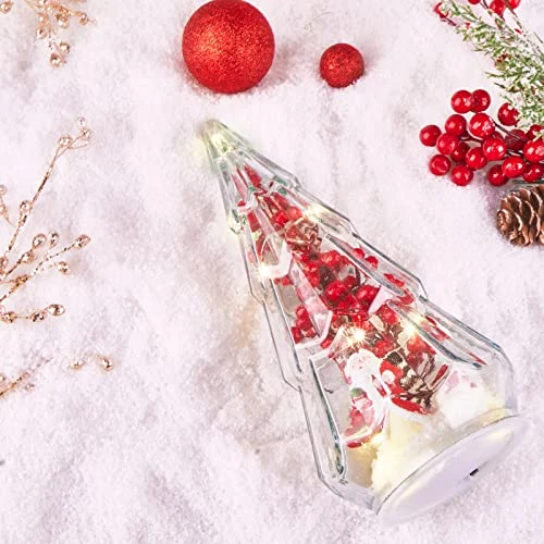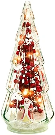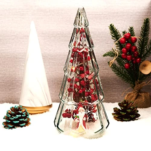 Dohance 11″ LED Tower Glass Desktop Christmas Tree, Glass Xmas Tree Christmas Ornaments Set With Artificial Berries And Xmas Old Man Decor, 2 Style LED Modes, Home Table Decor Festive Gift
