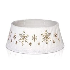 - Tree Collar with Unique Design – Ready to add a WOW factor to your holiday decor this year? The attractive snowflake pattern and white plush base make this an easy item to incorporate in anyone’s decor. Add holiday charm to your Christmas tree with this tree collar.