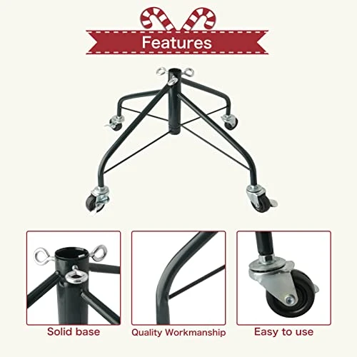 - Premium Material: Heavy duty Iron construction made, durable and sturdy. Rolling wheels are made of scratch-resistant rubber which will increase friction protecting your floors from scratches and noise. Also, dark green finish will be super matching with Xmas tree.