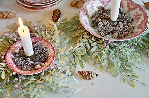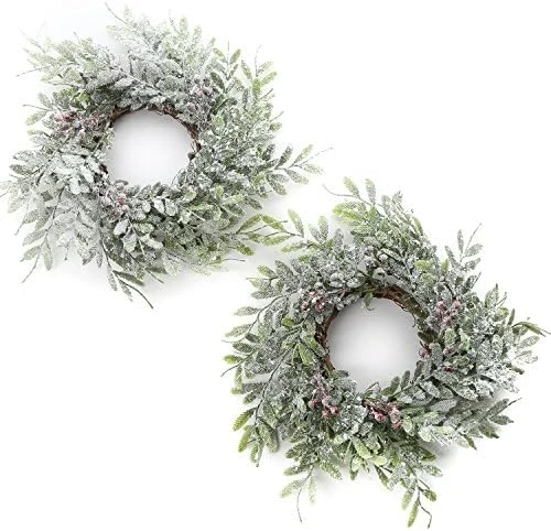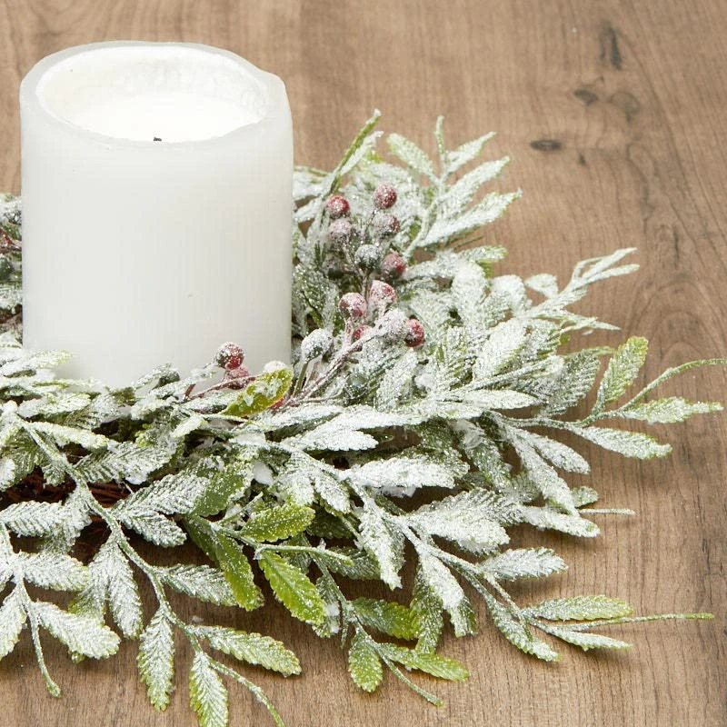 - HOLIDAY CANDLE RINGS – These Artificial Frosted Fern and Berry Christmas Pillar Candle Rings can be used in a variety of Christmas displays, providing your decor with a wintry holiday look.