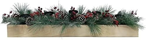 - DESIGNER FINISHES: Five pillar plates in a classic wood box overflowing with festive pine branches, red berries, and gold leaf accents will add elegance and warmth to your home. Recommended for pillar candles up to 3 inches tall (not included).