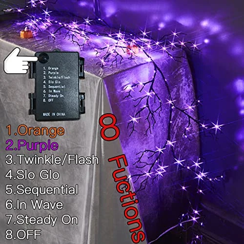 - 🎃 Total 8 FUNCTION: 1.Orange 2.Purple 3.Twinkle/Flash 4.Slo Glo 5.Sequential 6.In Wave 7.Steady On 8.OFF Satisfy the needs of different situation.
