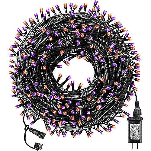 - Long lenth: The total length of this string lights is 100 ft, which contain 300 purple and orange glow LED lights (150 purple and 150 orange), and the lights can be connect together up to 300 ft with the male and female safe plug