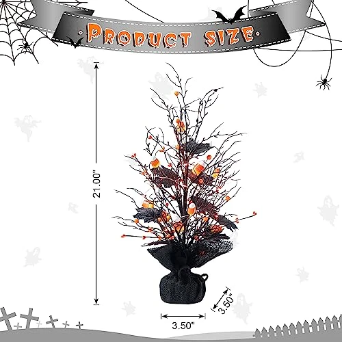 - DETAILED DESIGN: The Halloween table tree features swirling stems and vines, decorated with candy corns, berries, maple leaves and 20 bulbs with tangerine lights. This adorable stunning table decor is proudly displayed on your table or other flat surface, bring a horrific festive touch to your Halloween.