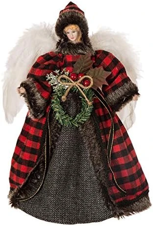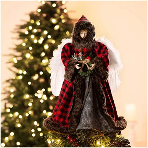 - EXQUISITELY CRAFTED WITH ATTRACTIVE DETAILS: The delightful decoration wears a traditional felt red black plaid coat and white wings. Angel with beautiful eyes, gold hairs, ruddy cheeks and sweetly smile will be a nice cheery addition to your Christmas tree decoration.