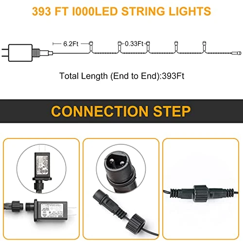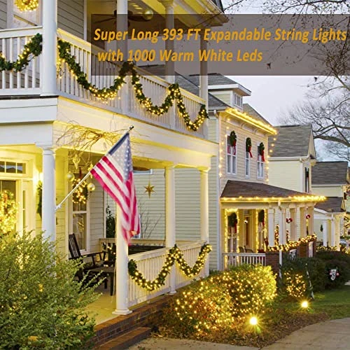 - γ393 FT Long String Lights & 1000 LedsγNo need to extend, extra-long led christmas lights to decorate your yard, garden, Christmas tree, bushes, flowerbeds, etc.