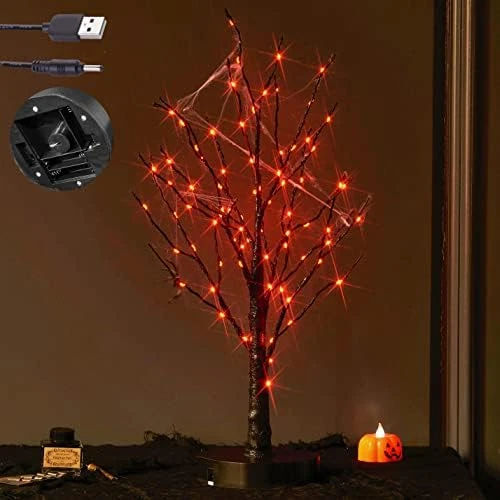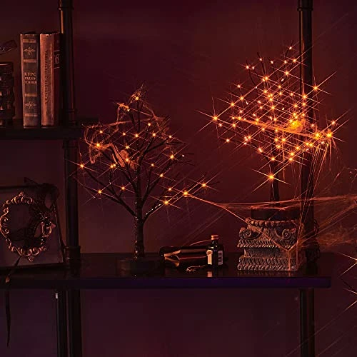 - 🎃【HALLOWEEN LIGHTS】: Dotted with 80L orange LED lights, hand crafted with black glittered finish, this 18IN lighted tree is a dazzling holiday display for Halloween wedding and Christmas
