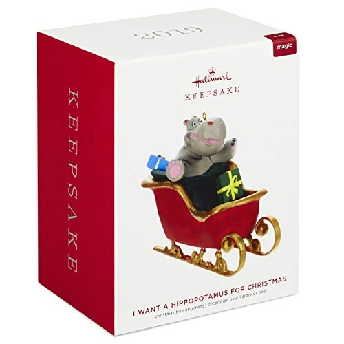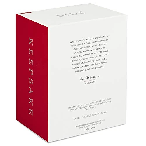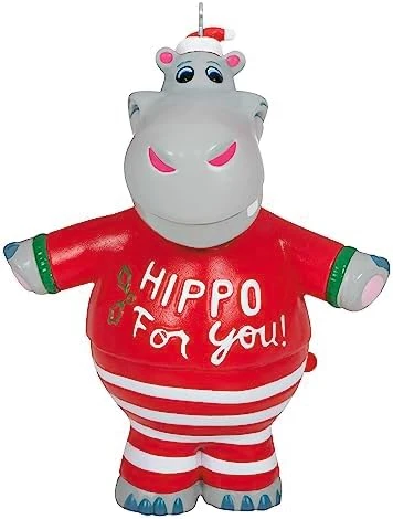 - Magic Sound Christmas tree ornament. Press the button on the ornament to hear music from “I Want a Hippopotamus for Christmas” performed by Gayla Peevey. Battery operated. Requires two (2) LR44 batteries, included.