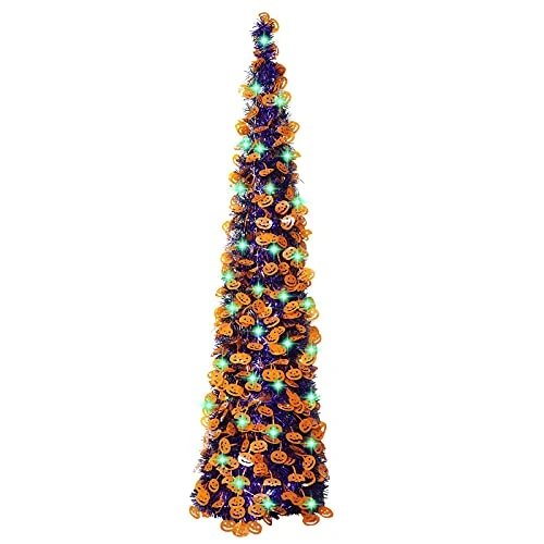 - 【Easy to Assemble and Store】Our pull-up design makes it easy to set up and pack away in a small box for next year. A collapsible metal stand is durable and reusable and requires almost no storage space. Good idea for Halloween decorations for home, Halloween indoor decorations, indoor Halloween decorations, Halloween christmas tree decorations.