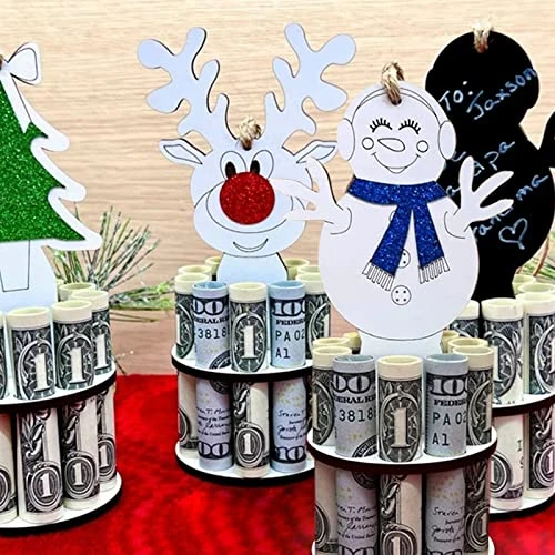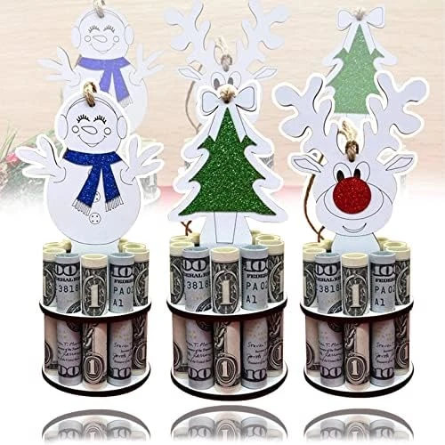 - [Christmas Unique Money Holder] —- These cute Christmas money holding ornaments are the perfect gift for those that love money or are hard to buy for. Each ornament can stand on it’s own or be hung. Has 10 holes for placing money in any denomination.