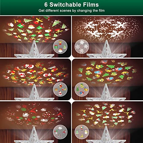 - 🎅【𝗠𝗮𝗴𝗶𝗰 𝟯𝗗 𝗥𝗼𝘁𝗮𝘁𝗶𝗻𝗴 𝗣𝗿𝗼𝗷𝗲𝗰𝘁𝗼𝗿】Sliver christmas tree star topper with 3D hollow design, classic pentagram look design with glitter gold powder (slight fall of glitter is normal). Decorate the top of your Christmas tree with projected patterns swirling and dancing on the ceiling to make your Christmas impressive.