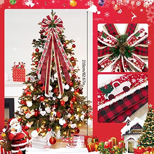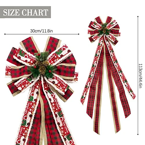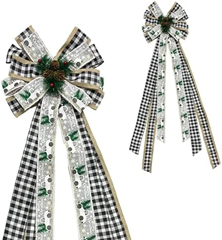 - 【High-quality Christmas Decorations】The Christmas tree topper bow is high quality .It’s easy to attach to your Xmas trees. The plaid buffalo tree topper bow may arrive flat because of transportation,but the ribbon has wire in it so that you can fluff and shape the bow as you like.