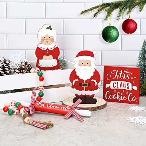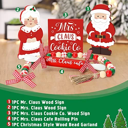 - 🎅Quality Durable Material – Wood signs are made with premium pinewood with clear and bright printing and fine workmanship. Mini rolling pin and wood bead garland is safe and odorless, completed with red and white buffalo plaid fabric bows.