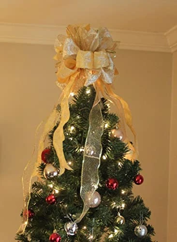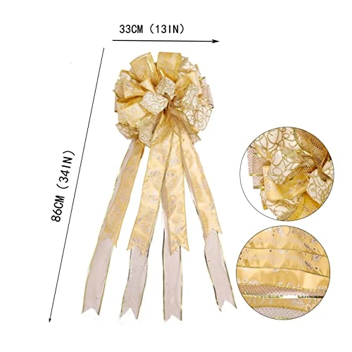 - Glittery Handcrafted ribbon bow provides a sparkly addition to your Christmas tree.