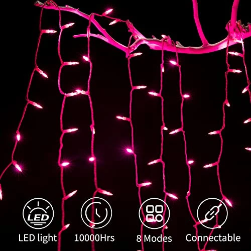 - 8 Lighting Modes: These LED twinkle lights have 8 fun settings where you can choose various flickers or constant on option. These 360º sparkling pink lights can not only provide good lighting effects but also bring a more romantic festive atmosphere