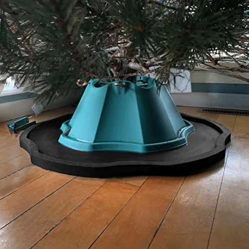 - Waterproof non-scratching design keeps your precious flooring dry and protected from common tree stand floor scrapes. This mat is so stylish and beautiful that it can be left uncovered (but it works perfectly with a tree skirt as well). Measures approximately 28″ x 28″ (exterior dimensions) with a tall 2″ raised protective lip.