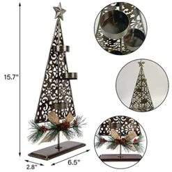 Winemana Tea Light Candle Holders, Christmas Decoration Xmas Tree Metal Tealights Candleholder With Pinecones, Christmas Tabletop Centerpieces For Home Kitchen Fireplace Mantle Holiday Party Decor