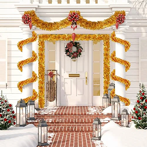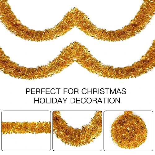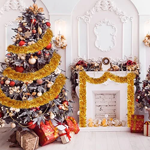 - SHINING METALLIC MATERIAL: This Christmas metallic twist garland is made of high quality PVC, durable and sturdy to use, not easy to break or fade, the inside of the tinsel contains metal wire, odorless and reusable.