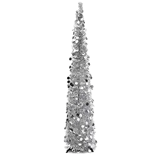 - Comes With: You will receive 1 silver pop up Christmas tree measuring 5 feet long