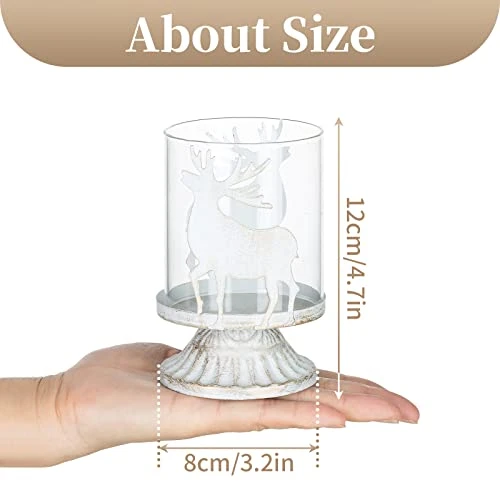 - ABOUT SIZE – This lovely stag candle holder is about 17.5cm/6.9″ height and 10.5cm/4.1″ wide; Glass hurricane: 8*10cm/(3.1*3.9″). Pack of 2 vintage pillar candle holders centrepieces. (Candles are not included)