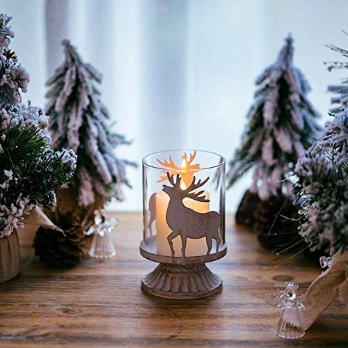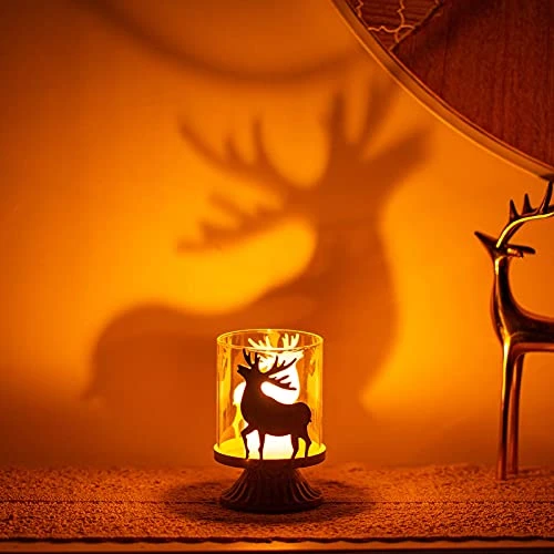 - CREATING LOVELY STAG SHADOW – Our deer candle holders look so nice especially when the tealight candles are lit, you can see the lovely stag shadow on side or wall, creating a charming atmosphere for your space. And the shabby chic candle holders come with a removable glass hurricane, so you can use it both indoor and outdoor tabletops.