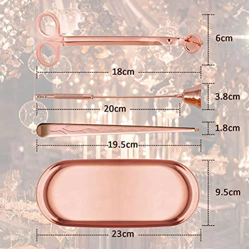 - High-Quality Material: Our candle snuffer, wick trimmer, and dipper are made of durable polished stainless steel with a stylish pink gold finish. Scratch-resistant, rust-proof, and built to last, ensuring a clean trim and safer candle burning experience.