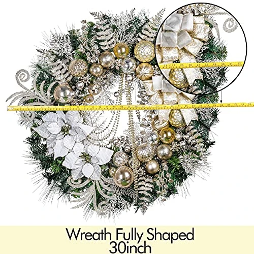 - 【Very Full and Large】- This 30” large Christmas wreath is full of Christmas balls, magnolia flowers, bow ribbons, string of beads, leaves and other rich elements, creating an elegant scene, conveying festive feelings with elegant and beauty, and bringing festive atmosphere
