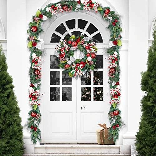 - 【Exquisite Craftsmanship】- Treated with the latest pressing technology to prevent leaves and pine needles from falling off the garland. This door garland will sustain its original colors and lifelike appearance for years. Note: For better display, please extend the garland when you take them out of the box